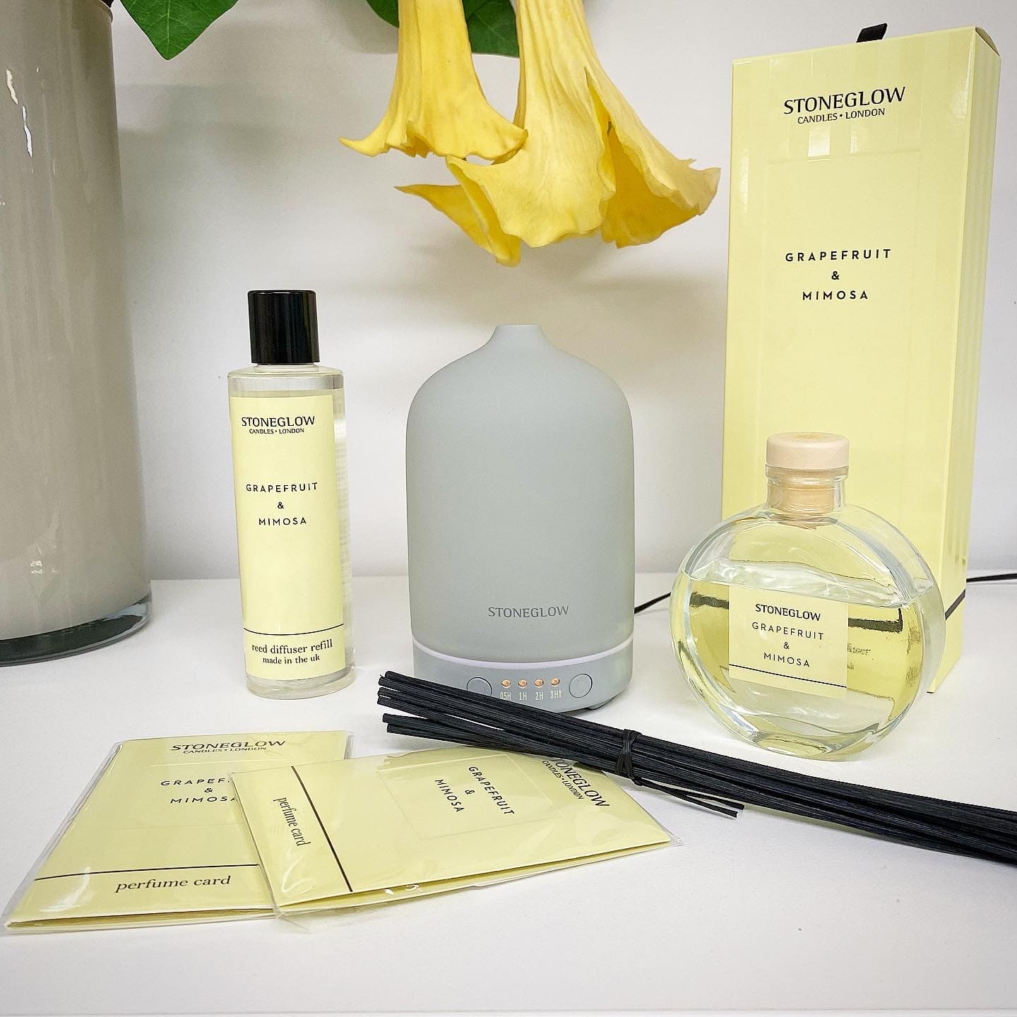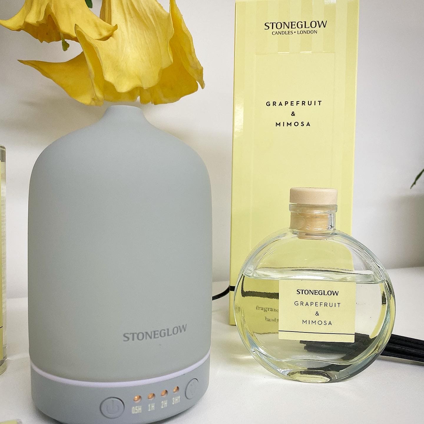 Диффузор Grapefruit&Mimosa (Грейпфрут и мимоза) из коллекции Modern Classics (Современная классика). Сочный, терпкий грейпфрут оттеняется фруктовыми нотами чёрной смородины и хрустящими нотами яблока. Нежная цветочная база из мимозы и сирени придаёт аромату восхитительное завершение.