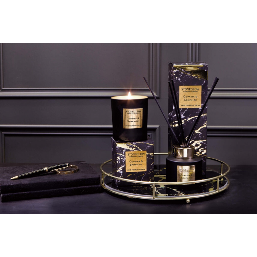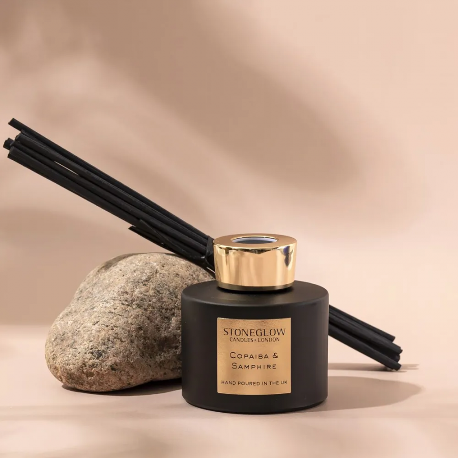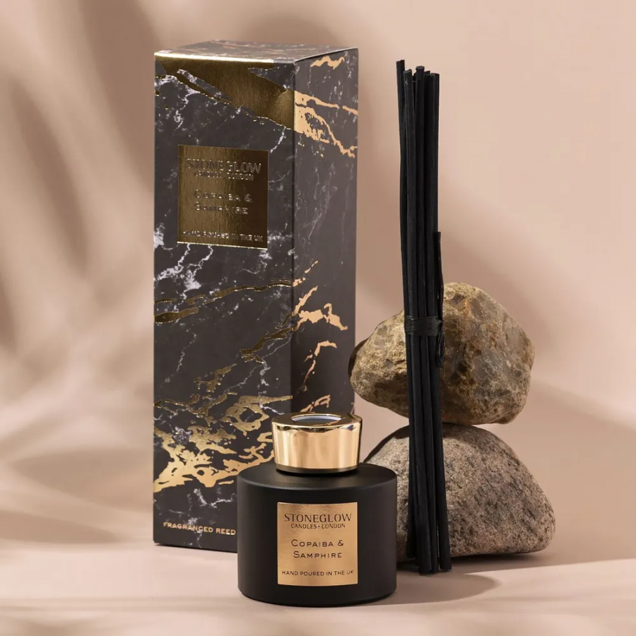 Диффузор Copaiba&Samphire (Копайба и Самфайр) из коллекции Luna. Прохладные ноты океанских брызг сочетаются с солёным самшитом. Бодрящие ноты перечной мяты и эвкалипта раскрываются на базе из землистого бальзамина копайского и можжевельника в этом бодрящем ароматном шлейфе.