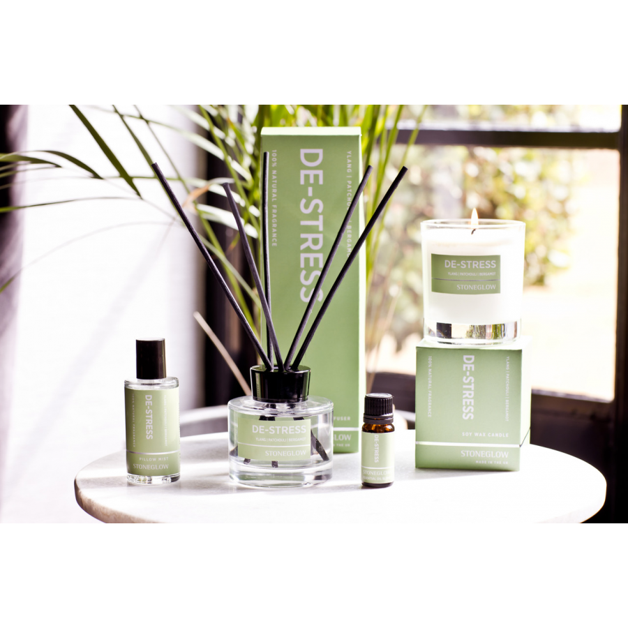 Диффузор De-stress (Снятие стресса) из коллекции Wellbeing (Благополучие), аромат которого поможет отвлечься от повседневных забот и восстановить душевное равновесие. Выполнен из 100% натуральных эфирных масел, специально отобранных за их антистрессовые свойства. Содержит шесть чистейших натуральных эфирных масел: лемонграсса, лаванды, бергамота, иланг-иланга, пачули и мяты перечной.