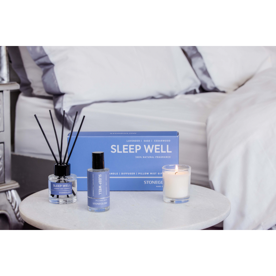 Спрей для подушек и постельного белья Sleep Well (Крепкий сон) из коллекции Wellbeing (Благополучие), аромат которого поможет успокоть разум, чтобы отлично выспаться. Выполнен из 100% натуральных эфирных масел, специально отобранных за их успокаивающие свойства перед сном, чтобы расслабиться. Содержит четыре чистейших натуральных эфирных масла лаванды, пачули, кедра и мускатного шалфея.