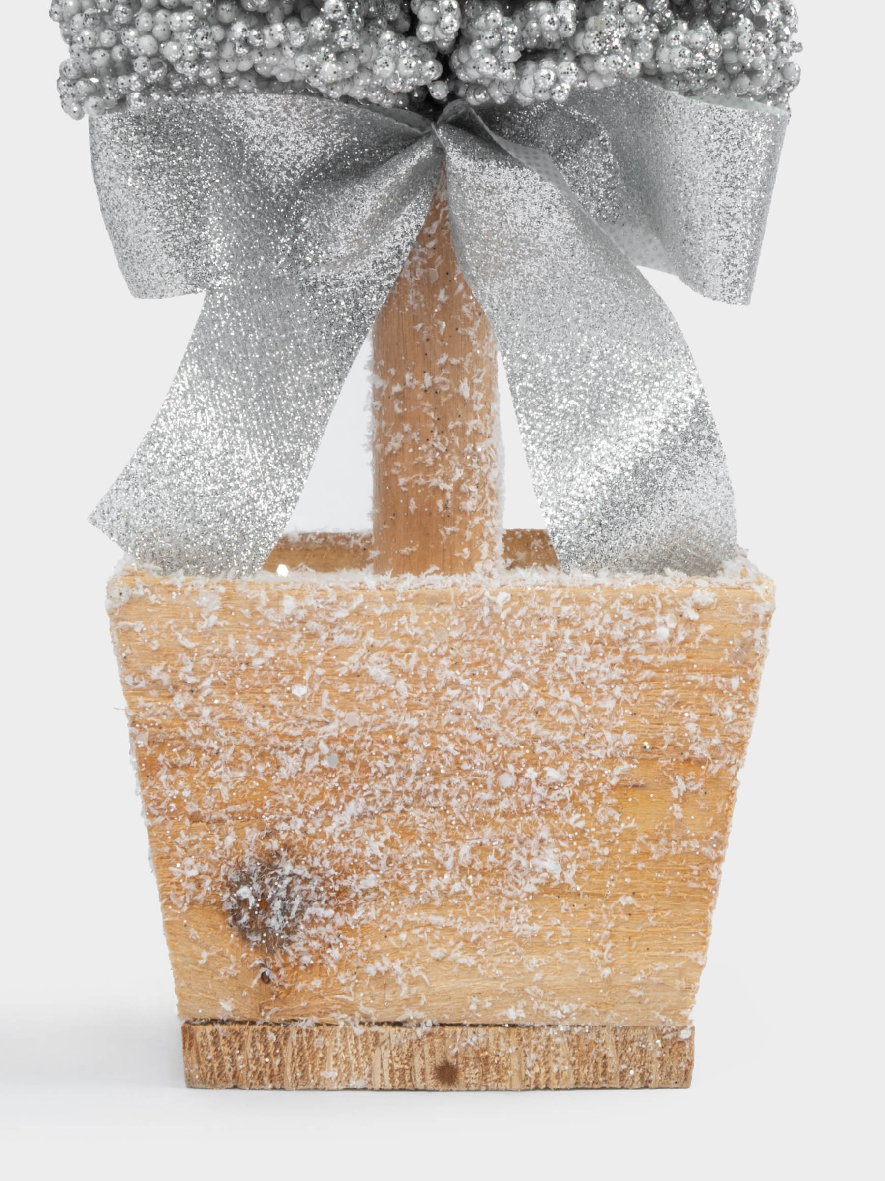 Ель искусствееая в горшке, серебристого цвета, для оформления интерьера.