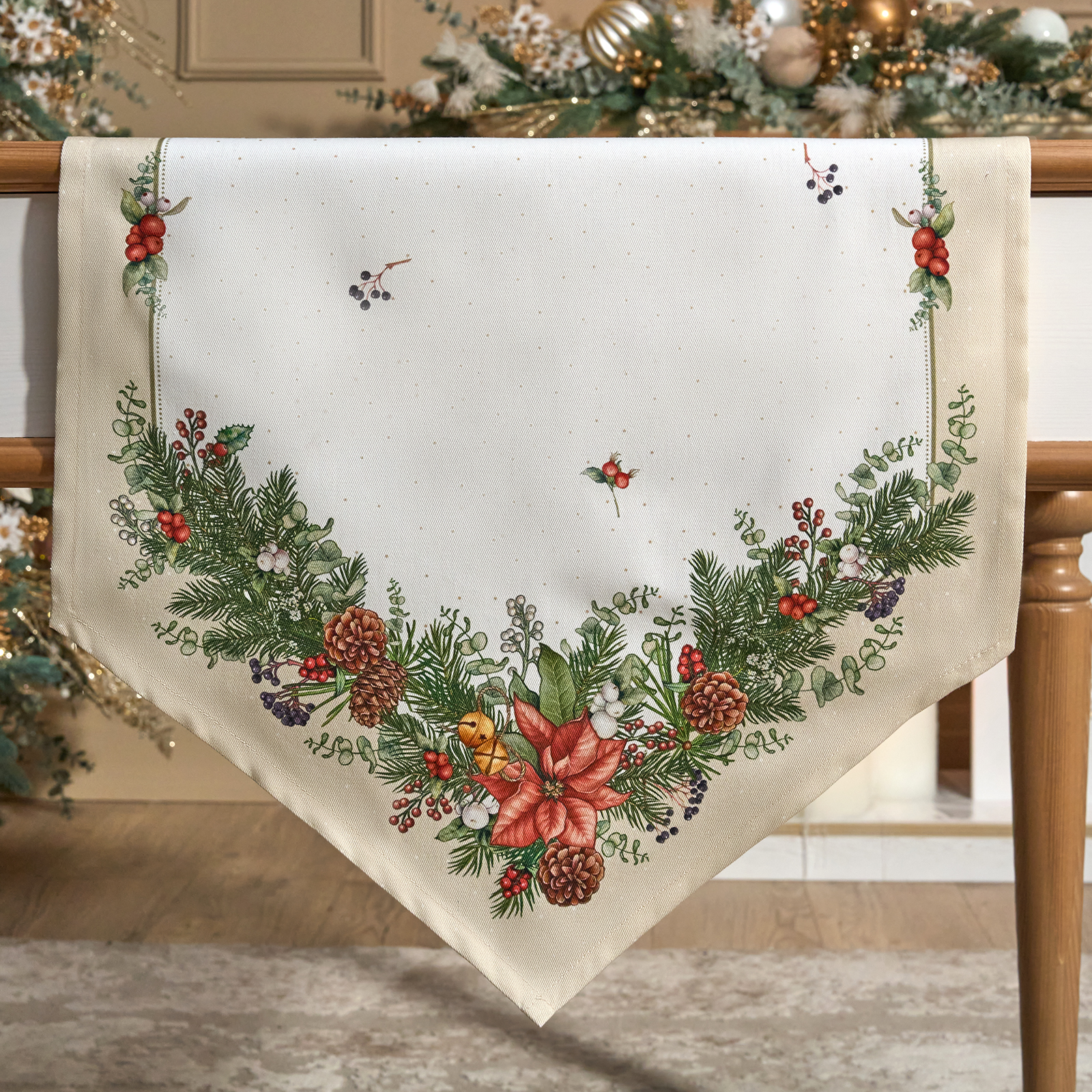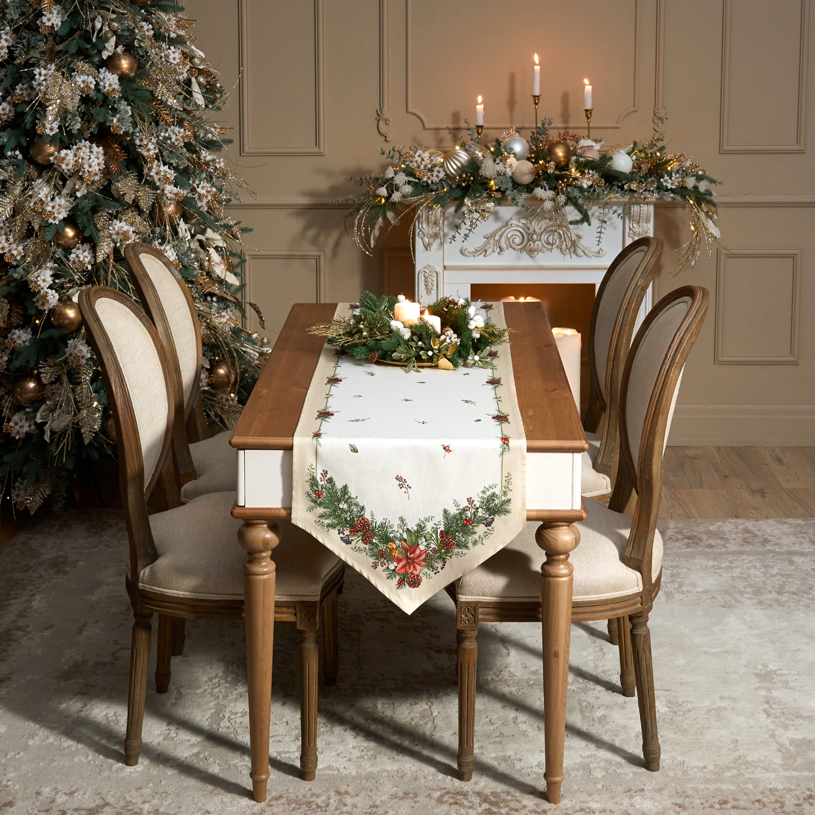 Новогодняя дорожка от Lefard из коллекции "Celebration" — эффектный элемент праздничного декора и практичное текстильное решение для сервировки столов. Идеально подойдёт на Новый год, Рождество и семейных торжеств. Новогодний принт с еловыми веточками, шишками и пуансеттией нанесён методом цифровой печати — не тускнеет и сохраняет насыщенность даже после длительного использования. Раннер оформлен симметрично с обеих сторон, что делает его эффектным акцентом сервировки. Благодаря водоотталкивающей пропитке поверхность не впитывает влагу, а капли воды легко удаляются салфеткой.