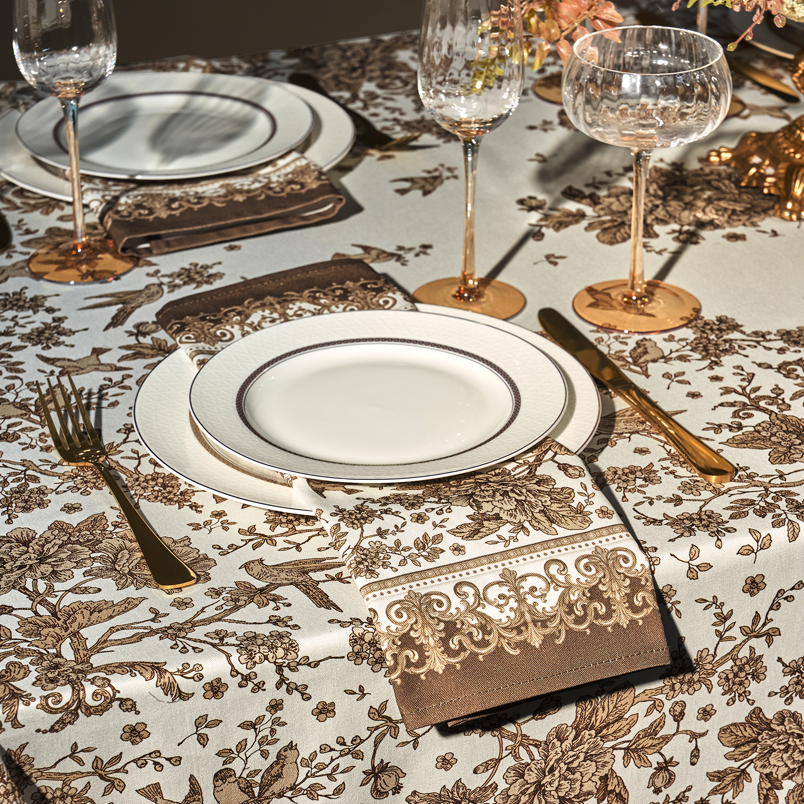 Скатертью от LEFARD серия "Rich Garden" -Эта изысканная модель из 100% хлопка создаст уютную атмосферу и подчеркнёт элегантность вашего интерьера. Натуральный материал приятен на ощупь, обеспечивает экологичность и долговечность. Специальная водоотталкивающая пропитка надежно защищает ткань от влаги и пятен.