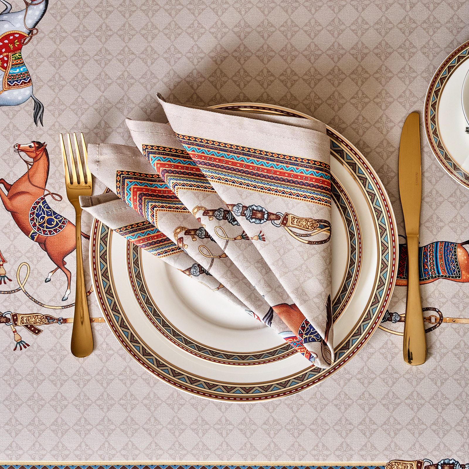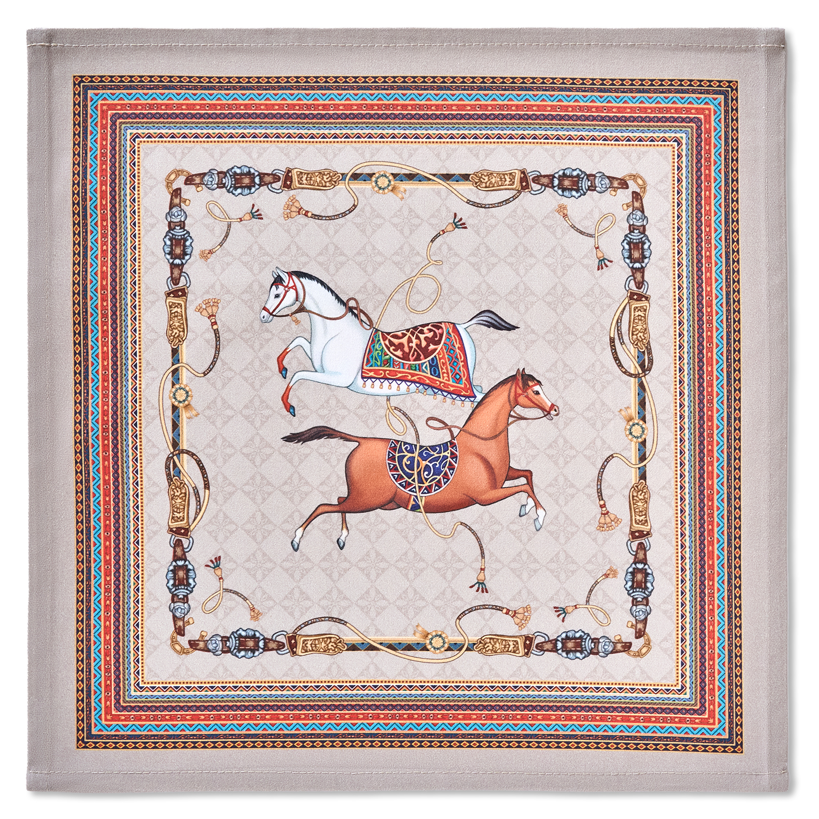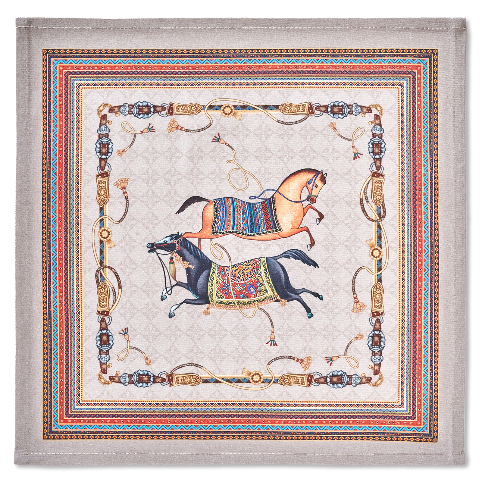 Декор с орнаментом и изящными лошадьми — символом 2026 года — придаёт сервировке выразительность и стиль. Такие салфетки подходят для новогоднего застолья, романтического ужина, приёма гостей или как часть текстиля на каждый день.в сочетании с дорожкой, скатертью или посудой из той же серии Passage формируется цельный и элегантный образ стола. В наборе 2 шт.