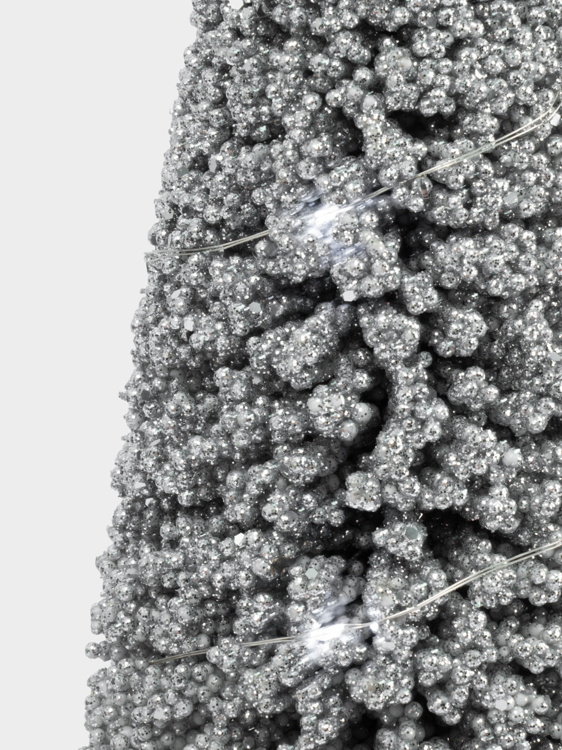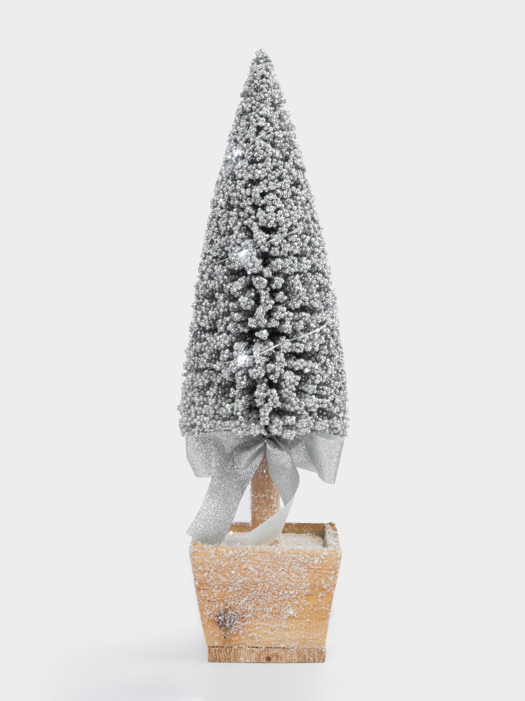 Ель искусствееая в горшке, серебристого цвета, для оформления интерьера.