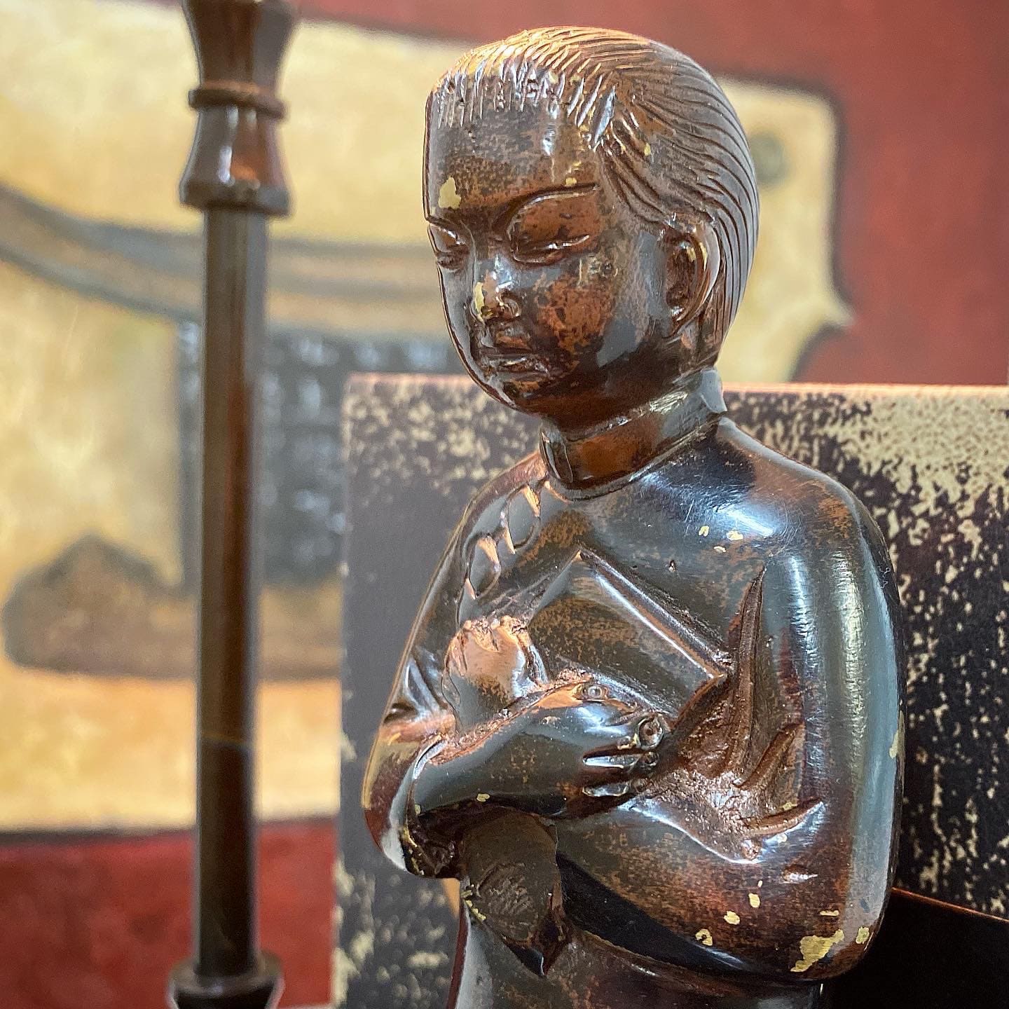 состаренного искусственным методом, украшен статуэтками восточных детей. В коплекте два предмета.