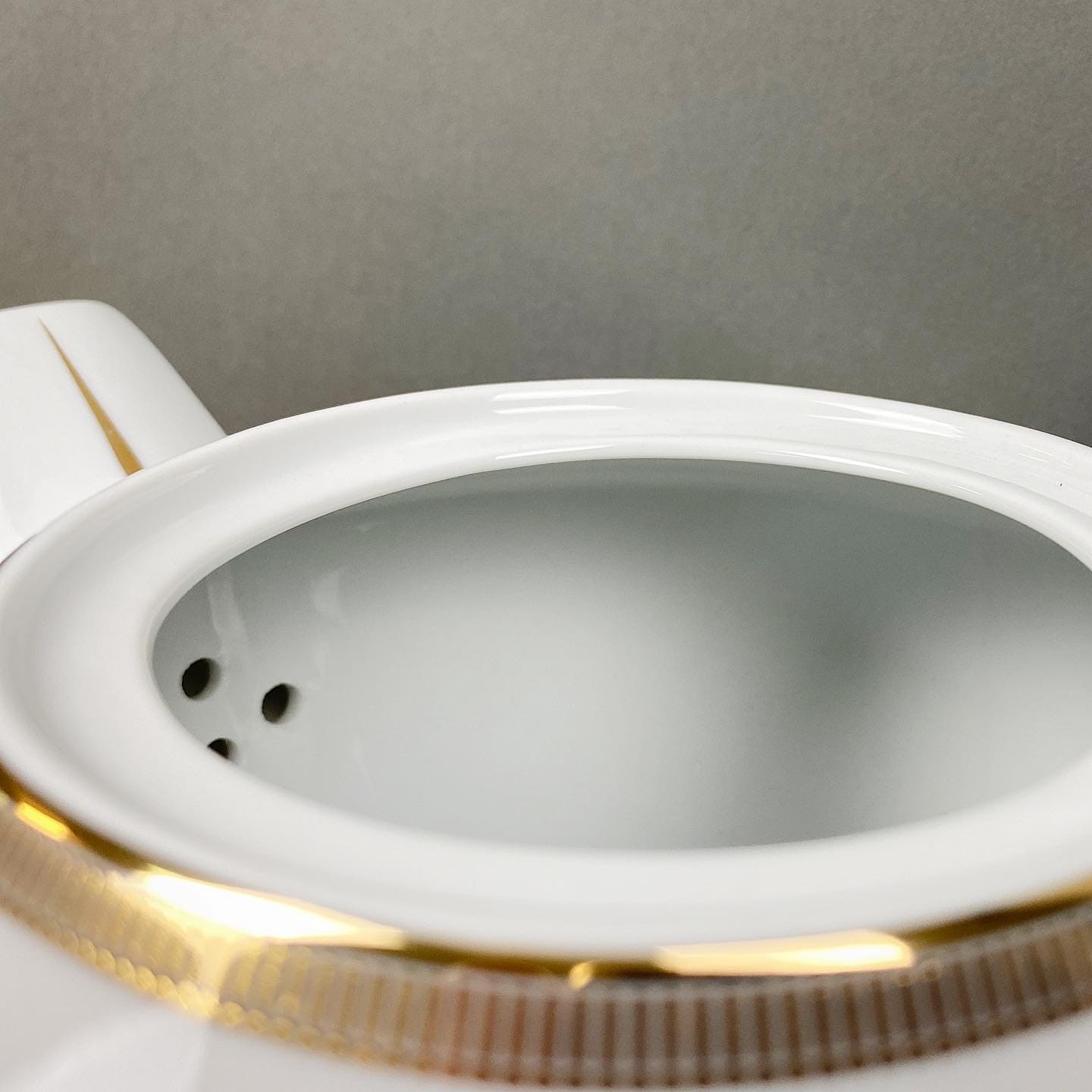 Роскошный чайный сервиз из коллекции Кремовая вуаль. Изделия выполнены из белоснежного фарфора, по которому будто струится полотно тончайшей ажурной материи. Тонкая золотая полоса завершает движение загадочной вуали. Глазурь, нанесенная на поверхность каждого предмета, обладает высокой прочностью, долговечностью и изумительным блеском.